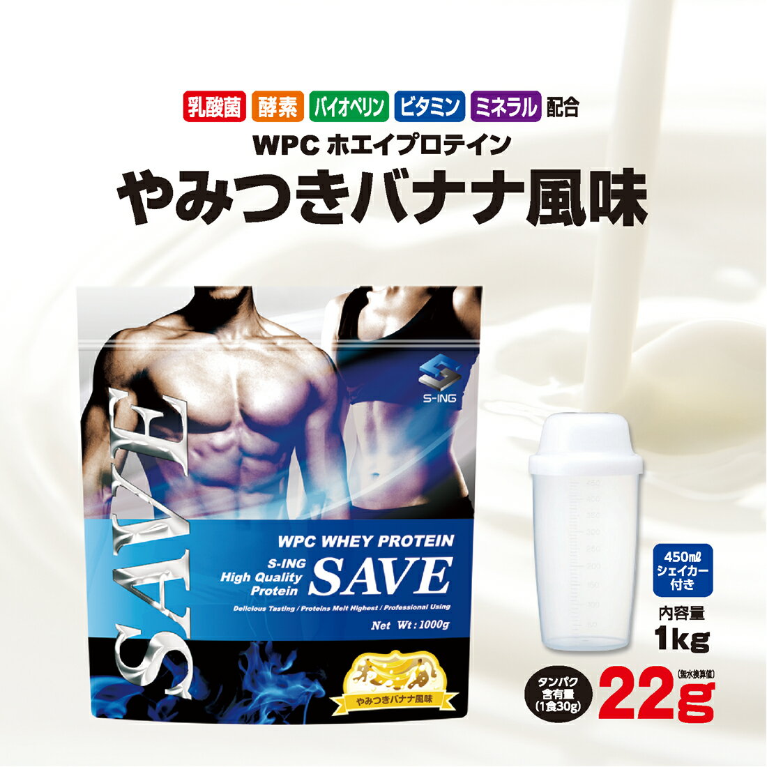 激安 ホエイプロテイン 【送料無料】 【シェイカー付】SAVE プロテイン やみつきバナナ風味 1kg 美味しいWPC 乳酸菌・バイオペリン・エンザミン酵素配合 価格:3,280円 |